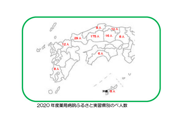 今年度の5年生は、2月15日に白衣授与式で激励を受け、それぞれ実習施設に赴いた学生です。1年間を4期に分けて、そのうちの2期間(2ケ月半✕2期=5ヶ月)をそれぞれふるさとの薬局や病院で実務実習を行っています。また、赴いている地域は近畿地方から沖縄まで、多くの施設で鍛えてもらっています。