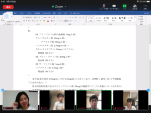 実習に伴い、教員も定期的にそれぞれの「ふるさと」に出向き、実習生たちとともに実習の成果セミナーを開催しているのですが、今年度はコロナ流行のために一味違う実習セミナーになっています。いわゆる、Zoom実務実習セミナーです。私などは幼少の頃、糸電話を作って遊んでいた世代ですので、こんな便利なものが最近はあるのかと感嘆いたしました。通信?技術の進歩はすごいですね。