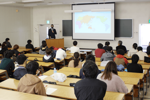 広島三次ワイナリーの太田醸造長に、2年生の授業である醗酵生産・醸造学で講義していただきました。11月11日(水)、【生物工学科】学生向け「お酒の講座」の開催です。