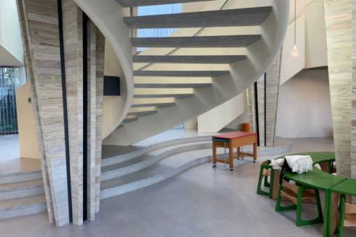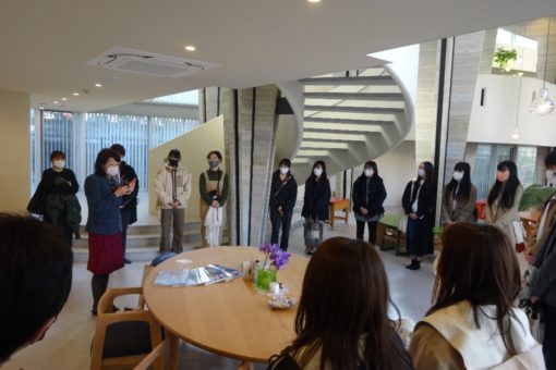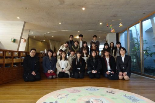 学長から一言:「こどもえん つくし」は、子供目線の素晴らしい建築をされていますねッ!甲斐先生、建築の学生のために施設を見せていただき、ありがとうございました!とても良い学びになったようです!
