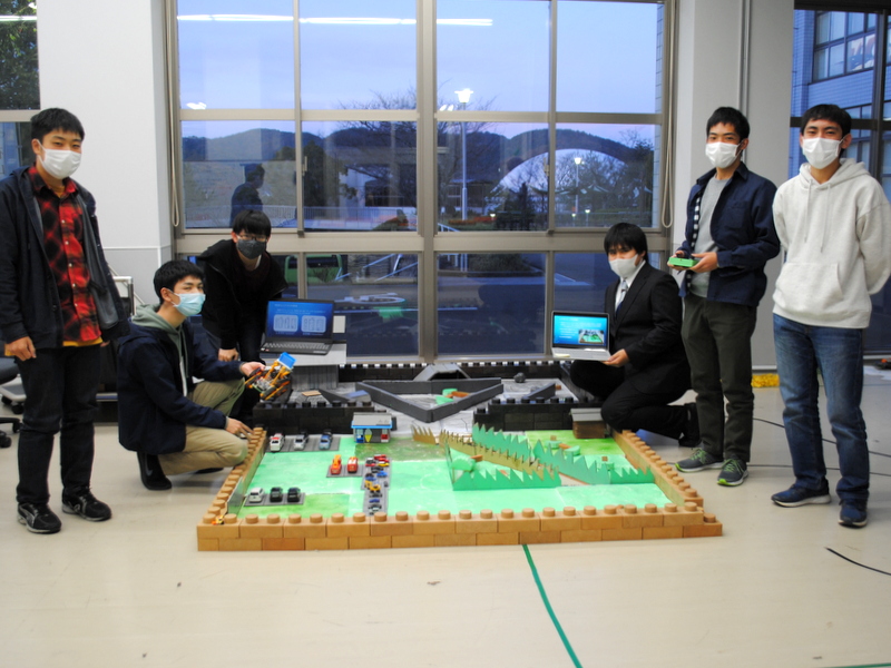 今年入学した1年生にとっては、遠隔授業が多くなかなか大学に来れなかったのですが、「教養ゼミ」のレスキューロボットコンテスト・シーズグループが積極的に活動をしてくれました。三蔵祭でもレスコン・シーズ広島版を実施してくれましたが、今回の学会で半年間取り組んできたプロジェクトの纏めを発表しました。彼らにとっては学会の学術講演会はまったく未知のもので、かなり緊張したようですが、事前の発表練習をみっちりと行い、またグループのみんなで力を合わせて取り組んでくれました。工学部棟1階のプロジェクトルームで、発表は1年生の守本さん、質疑応答には同じく1年生の市川さんが回答するという協力体制も良かったと思います。