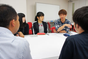 実社会で活躍する若手企業人との交流を通じて、学生の社会人基礎力を高めようと試みる「発信力向上プログラム」の第1回勉強会が、5月22日(火)に宮地茂記念館にておこなわれました。
