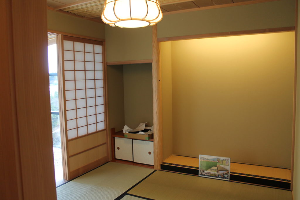 また、備後発祥の伝統技法で織られた備後表を使った茶室「育志菴(いくしあん)」などがあります。部屋に入った瞬間、畳のいい香りがしました!