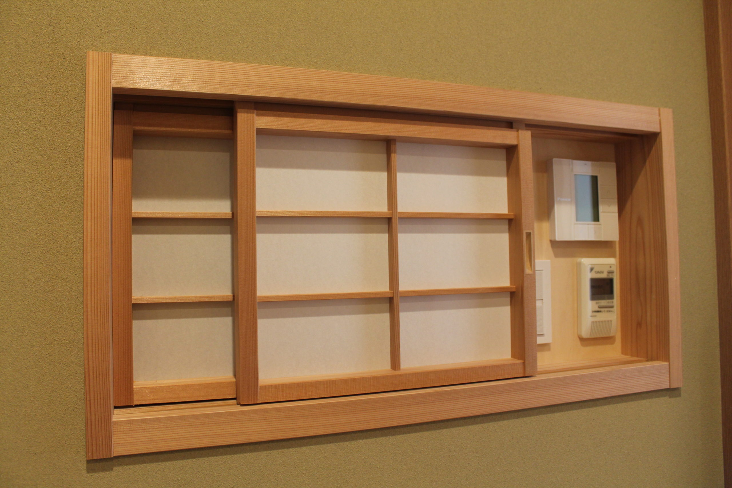 外観を損なう懸念のあるスイッチは、小さな障子で隠すなど細部にもこだわって作られていて粋ですね。