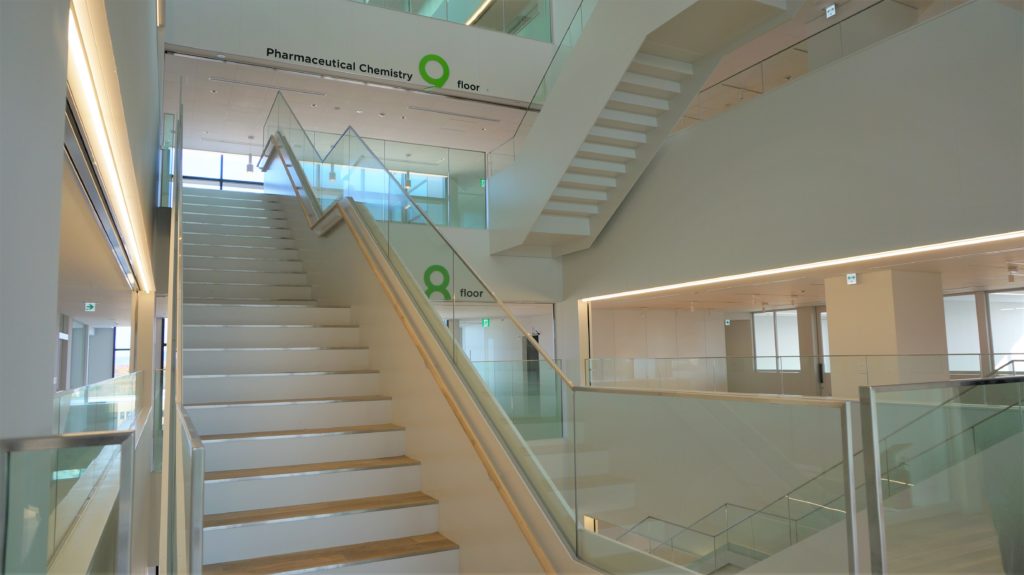さらに、4階から10階までは薬学部の実験室や研究室が入り、開かれた実験室、すなわちオープンラボとして利用されます。