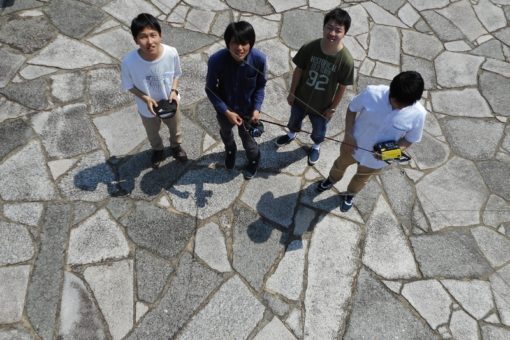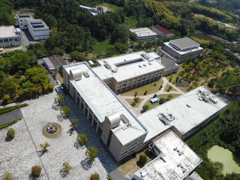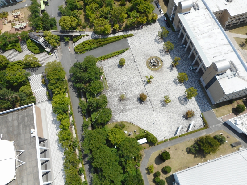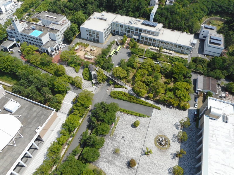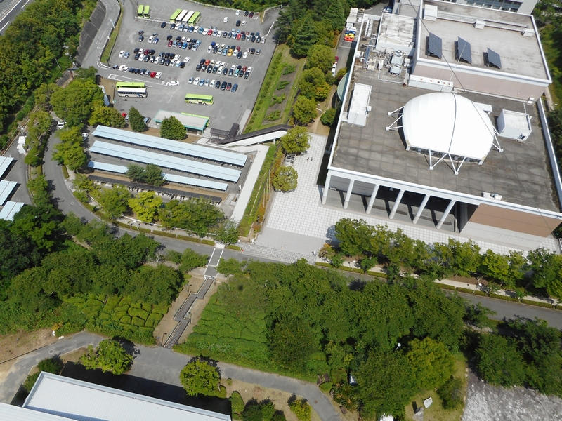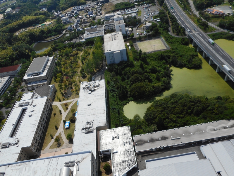 気球に取り付けたカメラの写真。上空から見た1号館。