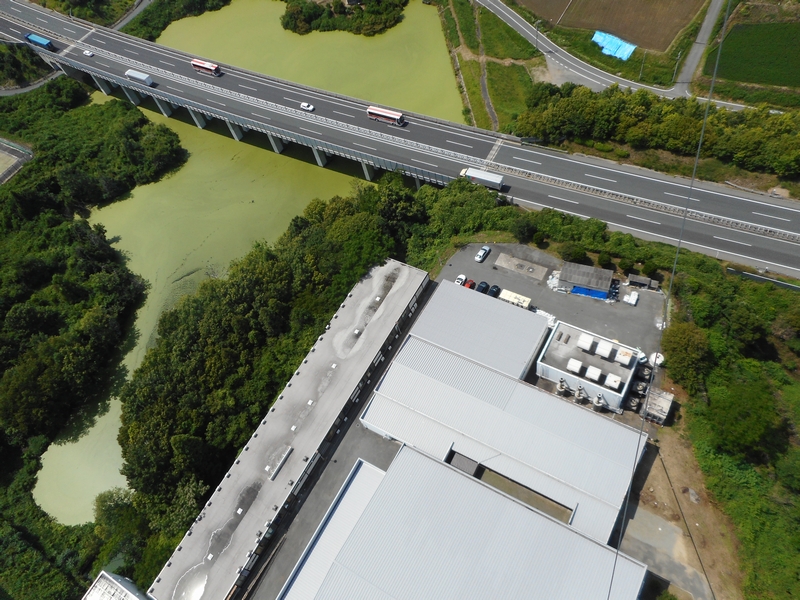 三蔵池と山陽自動車道。手前は武道館とクラブハウス。