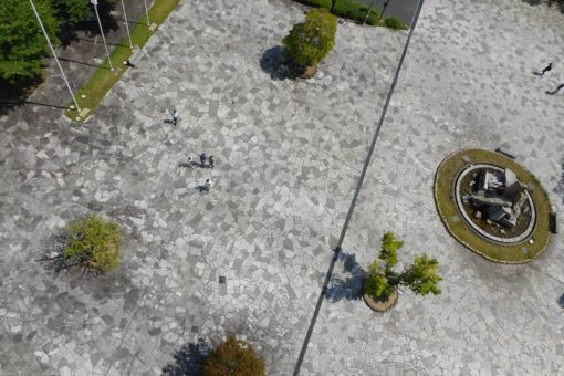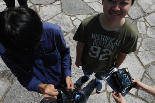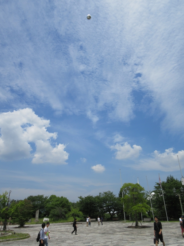 気球の真下、記念広場。そろそろ回収タイムです。どんな写真が撮れたか、回収してはじめてわかります。