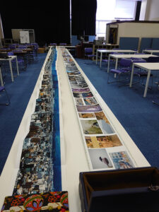 全長13メートルにわたる写真集を制作した学生もいました。自宅では広げられないので、大学の教室を使っての発表となりました。