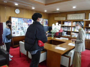 今回は、神田君と福井君の2名で学長室を訪問しました。