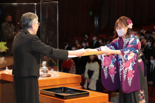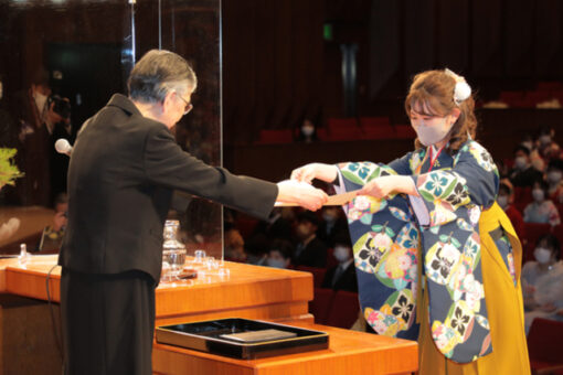 また、式後は、一人一人に各学科の学科長から学位記が手渡されました。