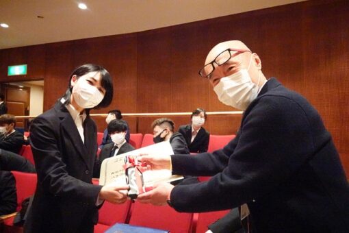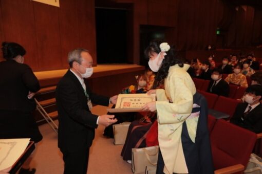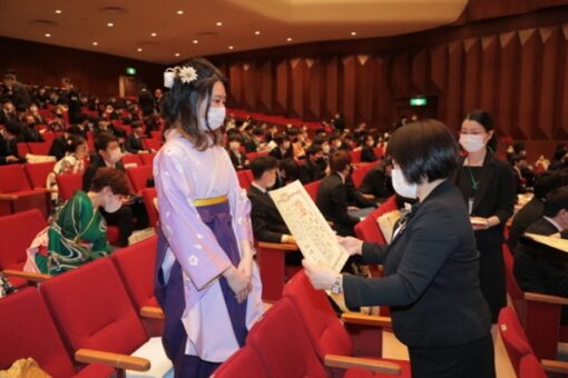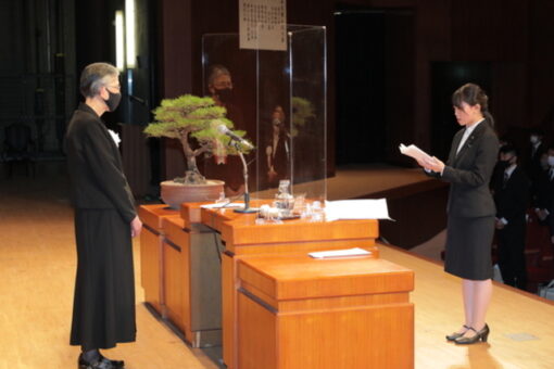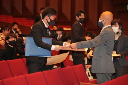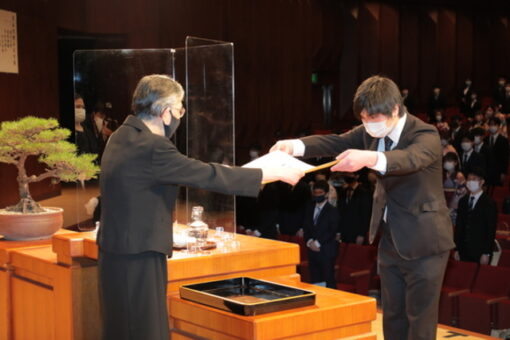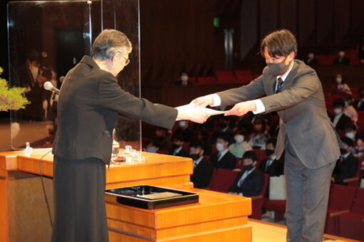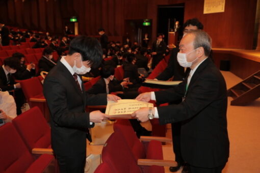 学位記(卒業証書)は、総代の代表が全員分を受け取りました。また、スポーツや社会活動、学業などで顕著な功績のあった学生の表彰(学長賞)も併せて行われました。