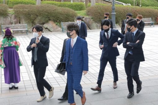例年だと、大学会館の外では在学生が先輩たちの門出を祝して花束を渡したり記念撮影をしたりと、にぎやかな光景が見られるのですが、今年度は残念ながら在学生は入構できませんでした。