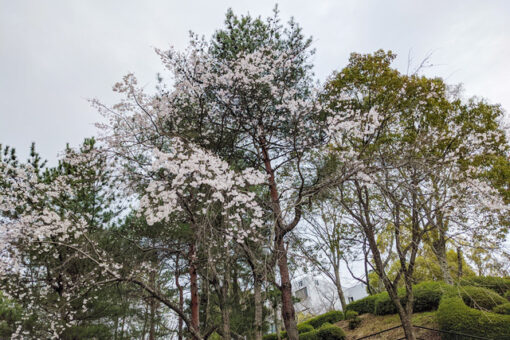 卒業式当日の朝は、学内の桜が少し咲き始めていました。