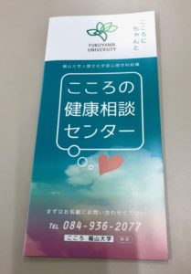 福山大学心理学科では、10年ほど前から、心理学を専攻する大学院生の実習施設として「こころの健康相談室」を持ち、一般市民の方への心理相談、それから心理臨床に関わる教育・研究などの活動を行ってきました。
