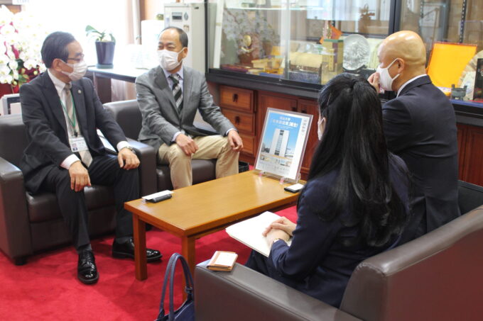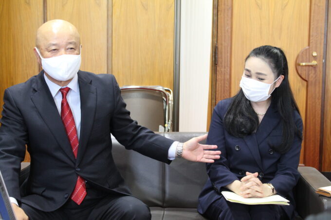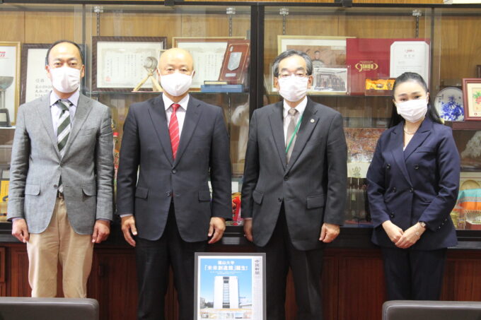 4月16日(金)午前、(株)クラハシの天野文男社長と倉橋彩子専務が学長室を訪問され、大塚豊学長と “教育と地域企業の連携” について熱く語られました。