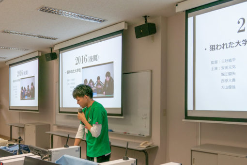 その後、学科の3年生が自分達が今までにつくってきた制作物の紹介を、1,2年生が授業で学んでいる内容についての発表を行いました。