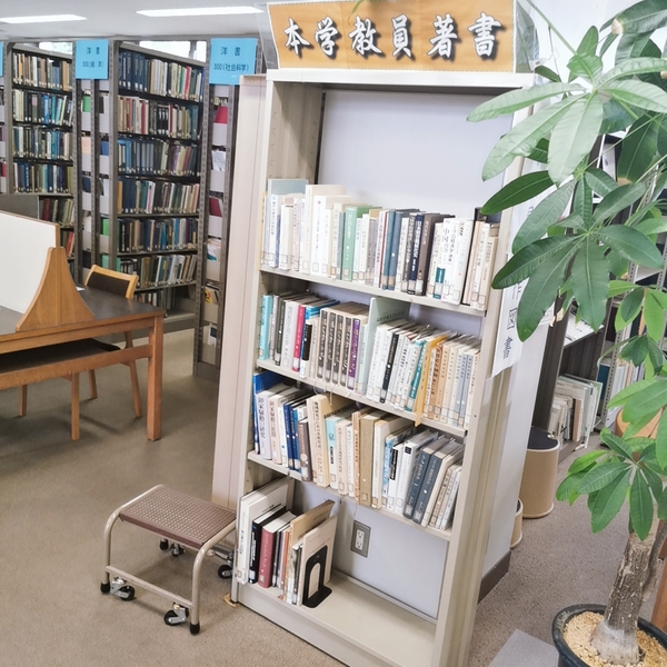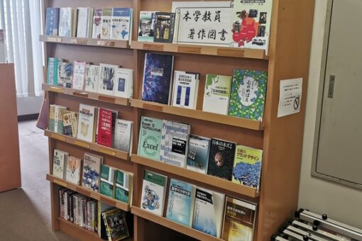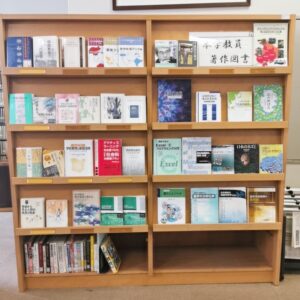 こんにちは!附属図書館の喜多村です。今回は、附属図書館本館にある「本学教員著作コーナー」について紹介します。