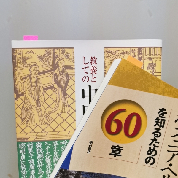 新入生の図書館オリエンテーションで、このコーナーについても紹介するのですが、担任教員や履修している授業担当教員の著作があると、新入生も興味深げに手に取っています。また、共著作品の場合は、執筆担当ページに付箋を貼って、どのページが執筆箇所かがわかるようにしています。