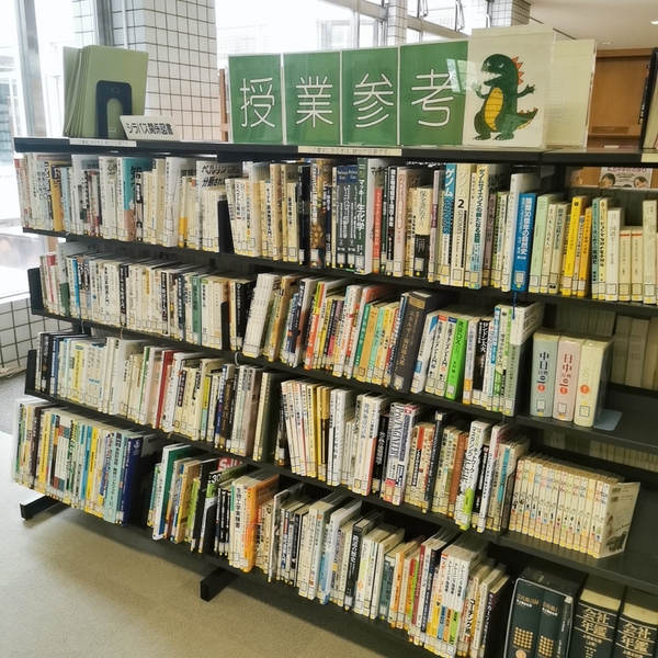 本学教員の著作のうち、授業の参考書としてシラバスで指定されている場合、「授業参考書」のコーナーに配架しています。こちらのコーナーは、入館してすぐの主要新聞のコーナーの奥に設置されています。