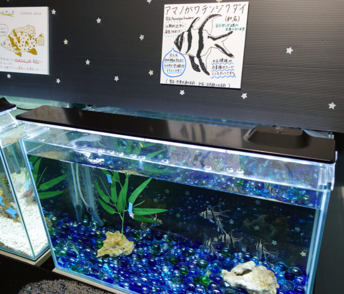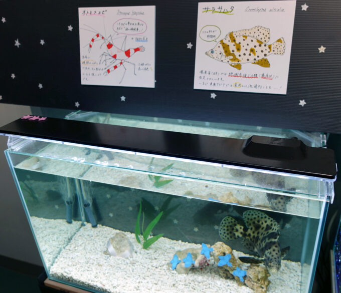 水槽のレイアウトや種名板の作成、展示物全てが学生らによるデザインです!!