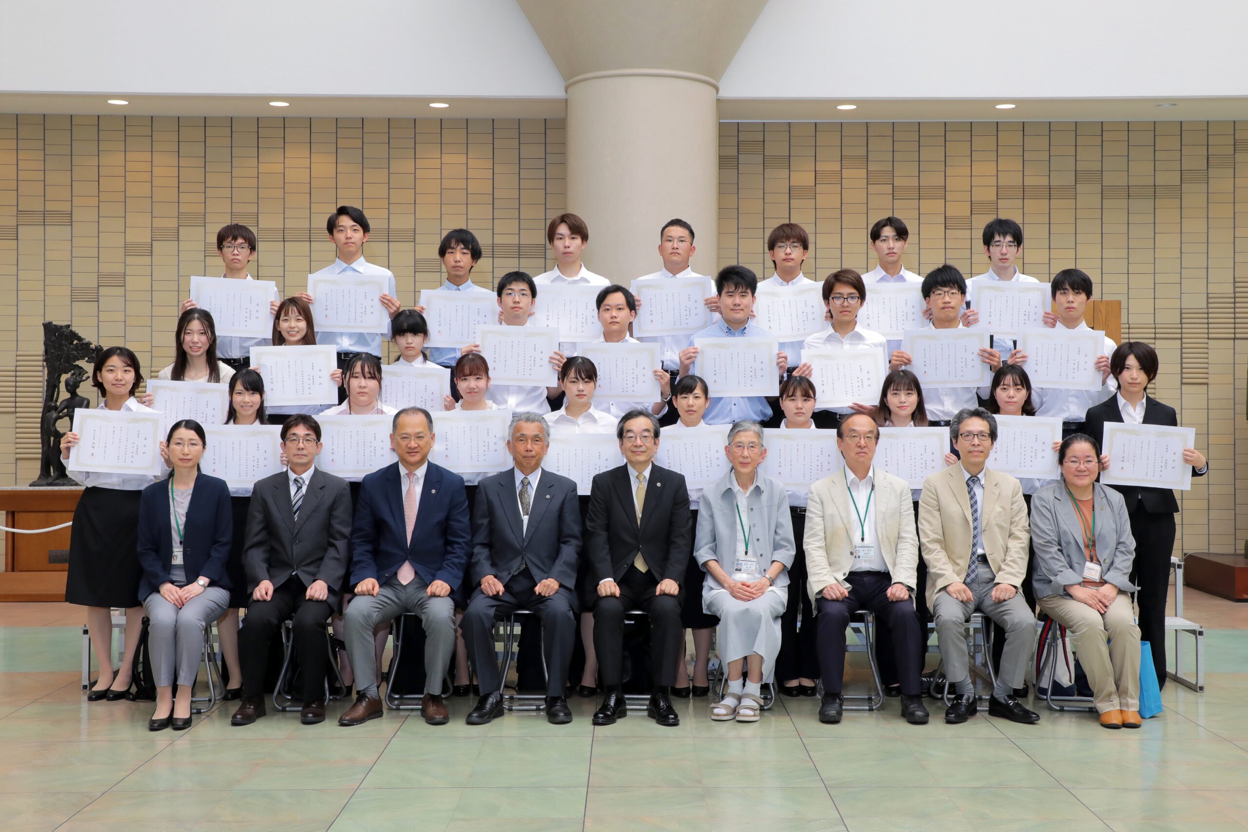 学長賞を授与された学生の皆さん、日々の勉学に励んできた甲斐がありました。来年度以降もしっかりと励み頑張っていきましょう!
