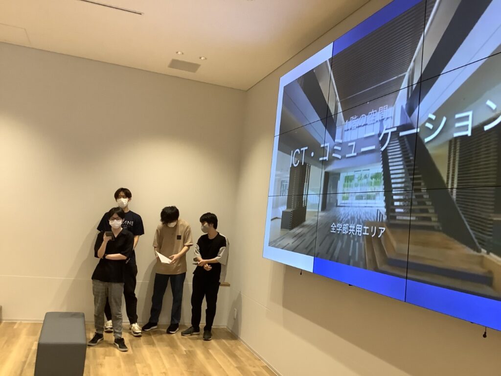 Display Cornerでのプレゼン経験について、参加ゼミ生はからは「いつもとはちがうところでの発表はすごく緊張した」、「いつもとは違う環境で発表して最初は面倒だったが、発表すると新鮮な気持ちになれた」、「開放的な空間なので声をもっと大きくできれば良かったと思った」といった声がありました。また、他のチームやゼミ生の発表を聞いて「他のチームは私たちよりわかりやすく伝えており凄かった」、「しっかり役割分担が出来ていて良かった」、「A君のように実際に暮らしていてその環境に慣れているととてもわかりやすい。だから、実際に体験したり経験したりすることで知識が沢山増えるので経験は重要だと思った」、「今まで利用したことのない施設などを利用してみたいと思った」など1コマという短時間のプレゼン経験でしたが、ゼミ生たちの収穫は大変大きかったようです。