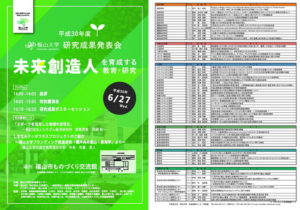 2018年度福山大学研究成果発表会は、2018年6月27日(水)に福山市ものづくり交流館(福山市西町1-1-1 エフピコRiM7F)で開催しました。