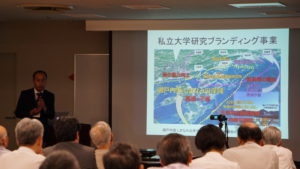 2017年度に、文部科学省の私立大学研究ブランディング事業に「瀬戸内海 しまなみ沿岸生態系に眠る多面的機能の解明と産業支援・教育」として採択され、今回のブランディング関係の発表は里海部分になり、現在、重点的に取り組んでいる」などの挨拶がありました。