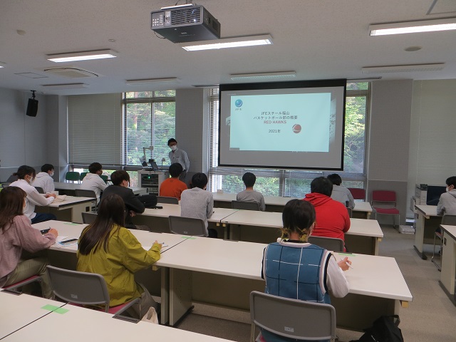 今年度は、JFEスチールバスケットボール部の50年構想にもとづいて「地域と共に発展するチームづくりを推進」されている福山のバスケットボールチームRed Hawks監督の三牧様からご依頼をいただきました。そこで、経済学部経済学科スポーツマネジメントコースの中村和裕講師と協働で「スポーツ✕IT」をプロジェクトテーマとして、スマートフォンを入り口とするファンサービスをデザインすることになりました。