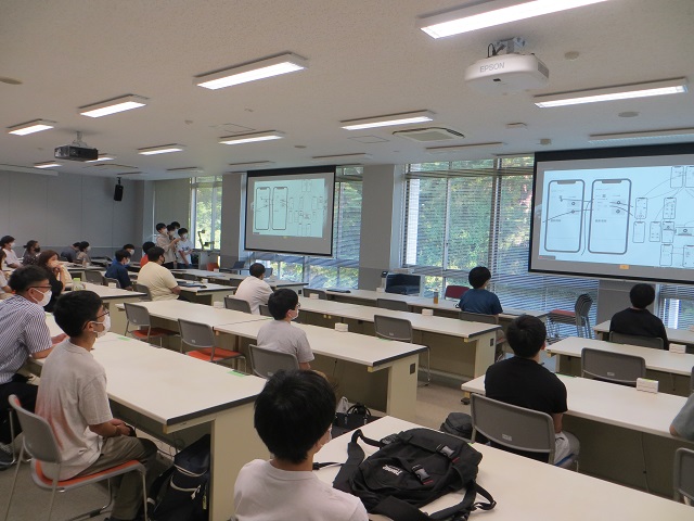 最後の発表会では、グループごとに作成したプロトタイプをもとに、スマートフォン上での提供サービスについてプレゼンテーションを行いました。発表会に参加いただいた三牧様からも「若い方々が、Webサイトを通してどのような情報を求めているのかを再確認できたとともに、今後の情報発信環境の整備を知ることができました。」とのコメントをいただきました。