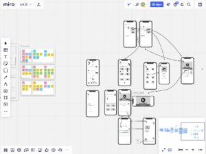 新型コロナウイルスの影響もあり、多くの時間は遠隔での実施となり、ZoomミーティングやMiroオンラインホワイトボードツールを駆使して、UXデザインの手順にしたがってスマートフォン上で提供するサービスのデザインを進めていきました。また、SA(スチューデントアシスタント)がZoomの各グループのルームをこまめに見まわりながら、アドバイスをすることでスケジュール通りに進めることができました。