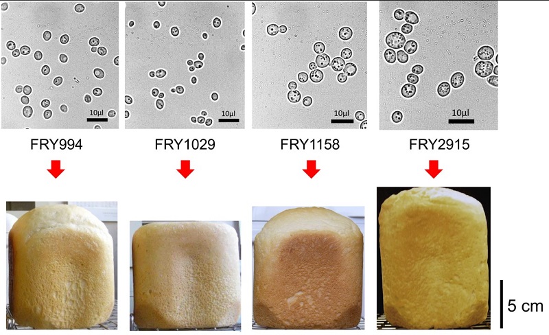顕微鏡で見た様々な酵母(バラ酵母)と、その酵母から作られた食パン