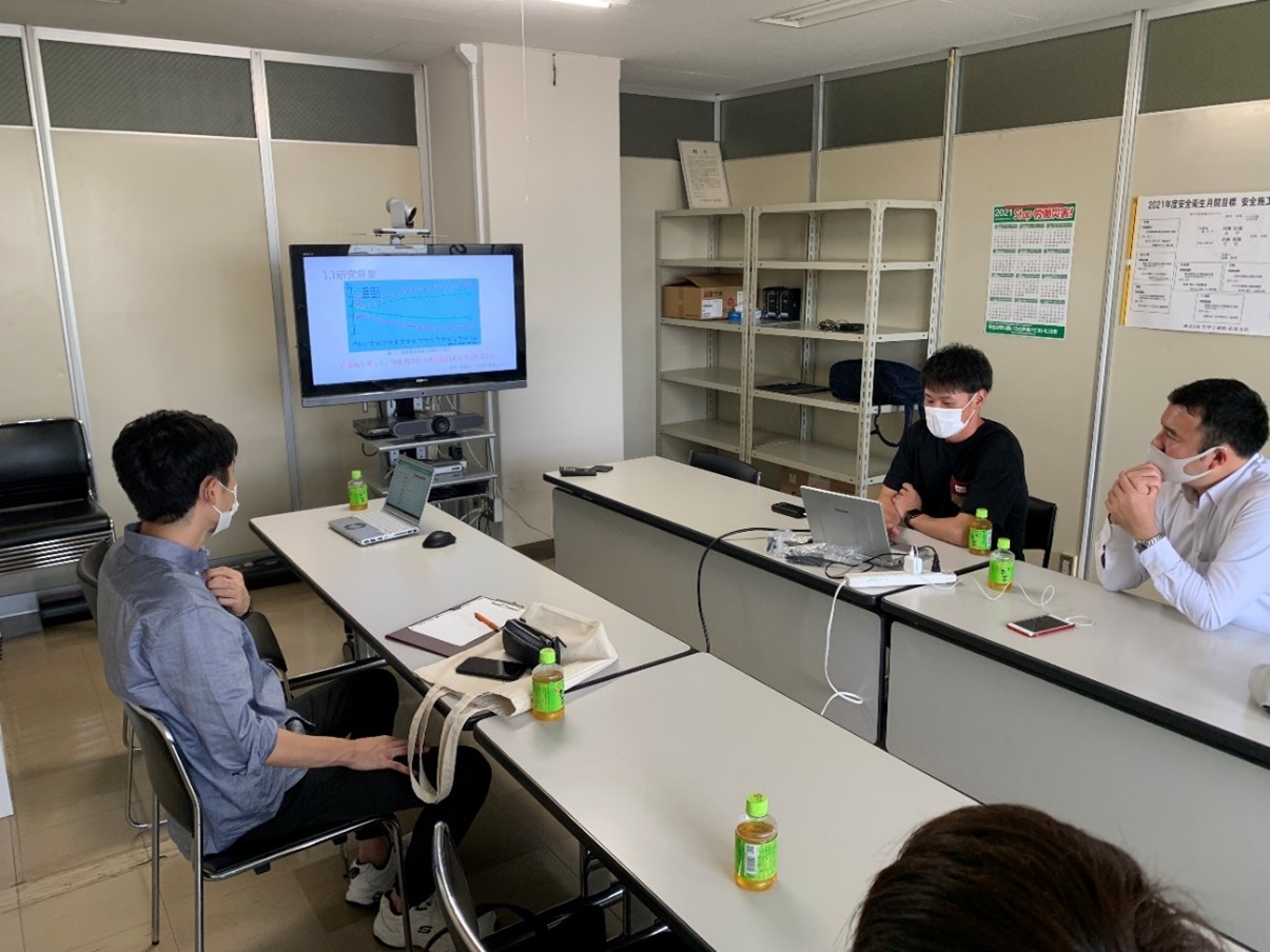 これらの調査や卒業研究などの課題について、施工担当者及び開発担当者とディスカッションを行いました。(写真-5、6)