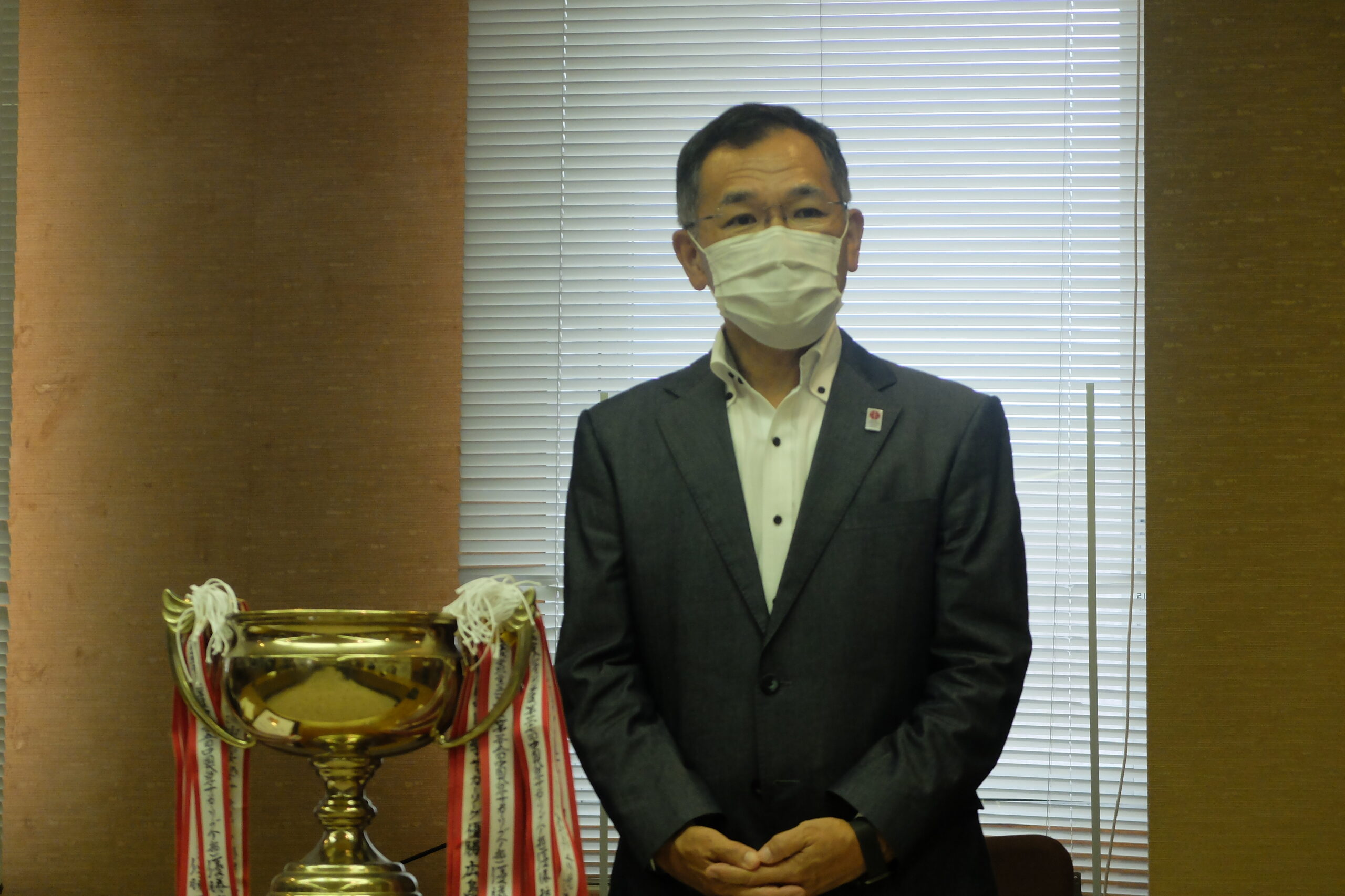 学長から一言:いずれ劣らぬ強豪が居並ぶ中国地区での戦いを勝ち抜いて、昨年に引き続き、「総理大臣杯全日本大学サッカートーナメント」への出場を決めたサッカー部の代表が市役所に赴き、枝廣市長と小川市議会議長に対して直接その報告を行ったという知らせに、私まで誇らしく感じました。お二人からお祝いのお言葉と激励金までそれぞれ頂戴したからには、弥が上にも大会で活躍しないといけませんね。溌剌とした熱い戦いぶりで、「福山大学ここにあり」の気概を全国に示してください。期待しています!