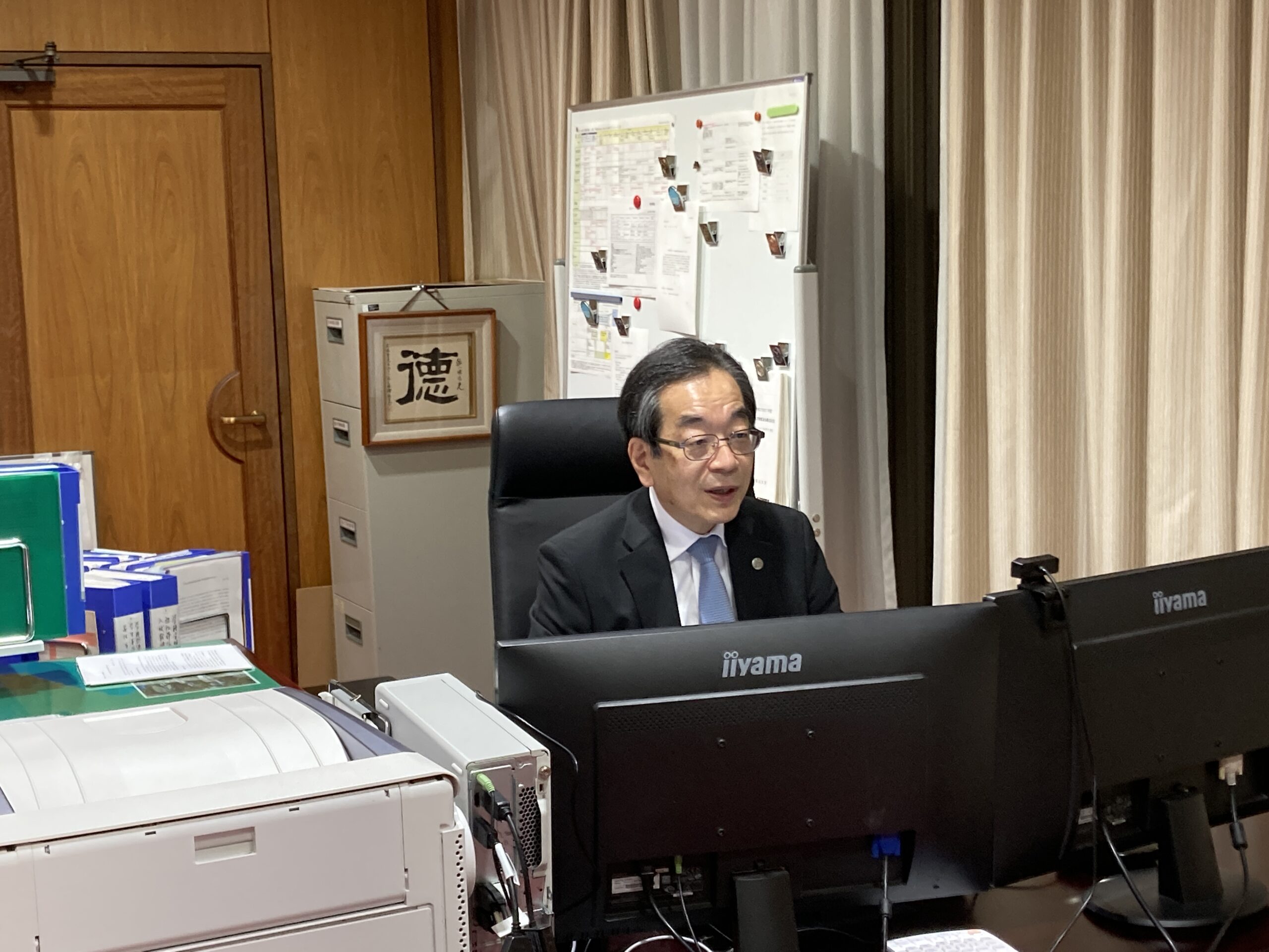 学長から一言:自分自身に関するブログに「一言」を添えるのは気恥ずかしいですが、北京にある協定校の創立70周年の記念行事に祝賀の意を込めて、日本時間で夜7時からオンラインで参加しました。中国や協定校への敬意を表するため敢えて中国語での発表にしました。ズーム操作をはじめ進行を気遣って伊丹国際センター長と坪根国際交流課長が遅くまで付き合って下さいました。本学もあと20年ばかり先の創立70周年の時には、今よりもっともっと輝く大学になっているよう弛まず頑張りたいものです。