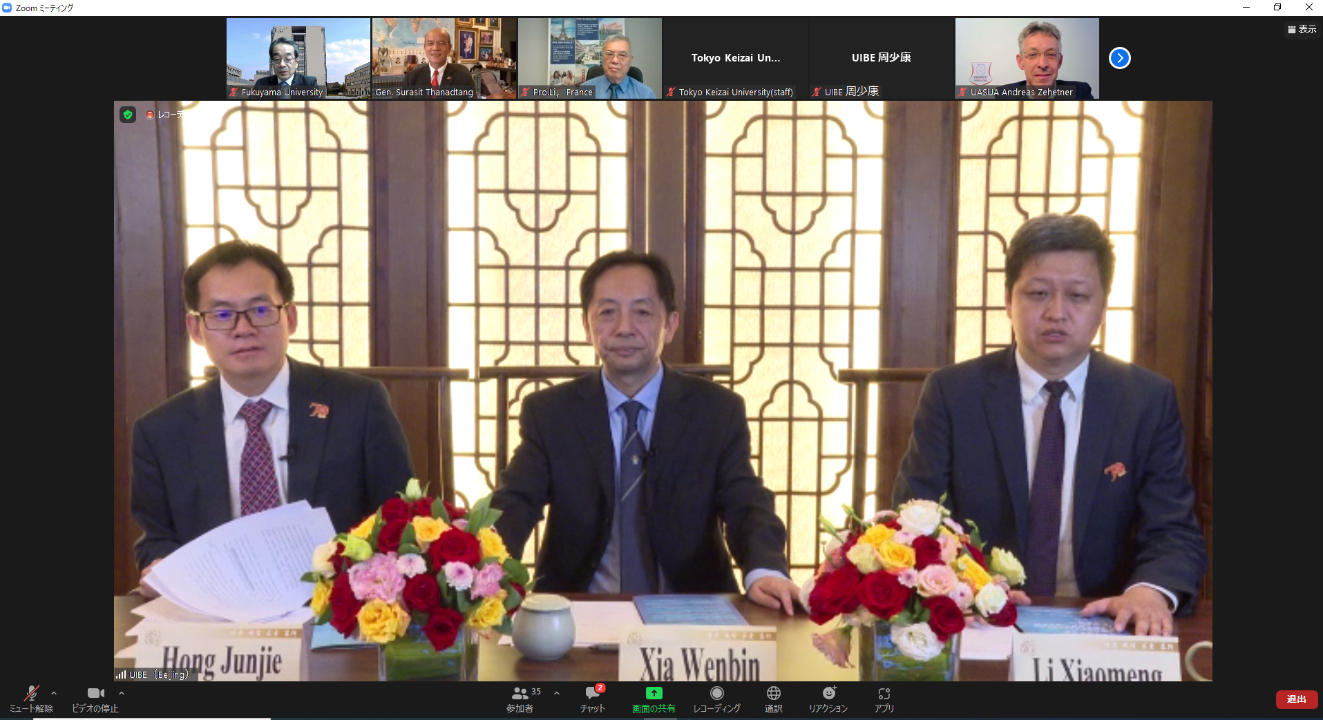 本学の大塚豊学長が、対外経済貿易大学がオンライン開催した「Global Forum of University Presidents 2021-Global Higher Education Governance and Cooperation-(世界学長フォーラム2021 ―世界の高等教育に関するガバナンスと協働について―)」に招待され、基調講演を行いました。その様子について、伊丹国際センター長と国際交流課が報告します。