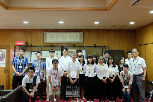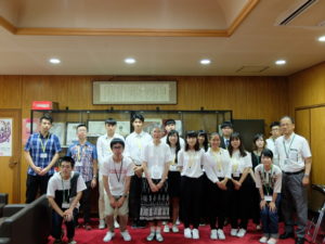 淡江大学の皆さんは、尾道や福山での文化研修を経て、7月23日(月)に福山大学のキャンパスに初めて来られました。JR尾道駅から松永駅、さらにスクールバスに乗車して引率の伍先生と10名の学生は大学に到着しました。