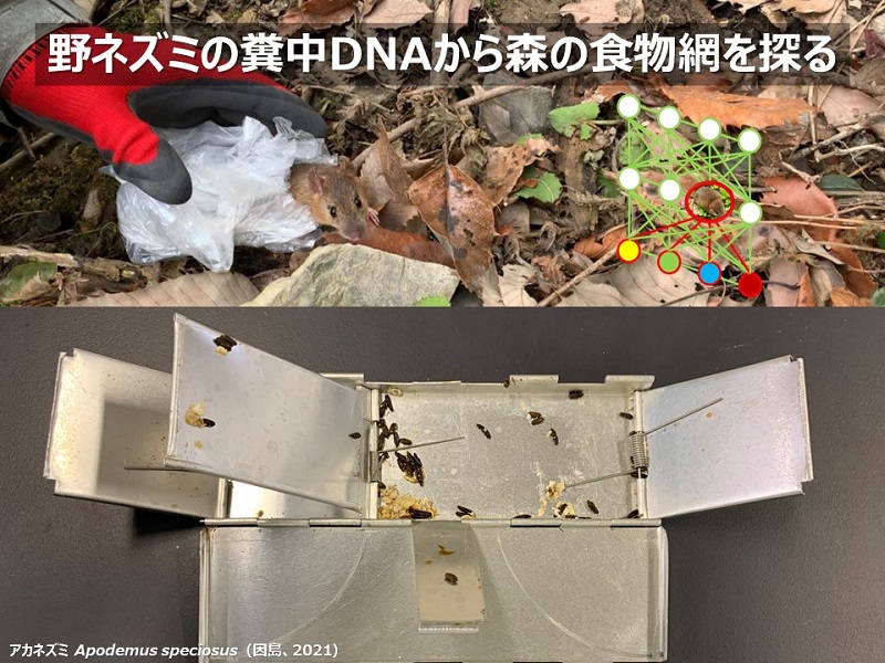 学長から一言:森の中でアカネズミをトラップで捕獲して、見落としそうな小さな排泄物を集め、その中に含まれる生物のDNAを分析していく作業。とんでもなく手間暇がかかり、骨の折れる研究を根気強く続けた末、その結果を学術論文にまとめて発表し、めでたく価値ある研究成果として国際的に認められたのは、何とも嬉しい知らせです。こういう地道な基礎研究が、個々の動物の食性を明らかにするだけでなく、自然を守ることにつながり、新たな実践的・実用的価値を生むことにもつながるのでしょう。こんな有意義で面白い研究に興味を抱く若者が生物工学科にドンドン集まって下さるといいですね。