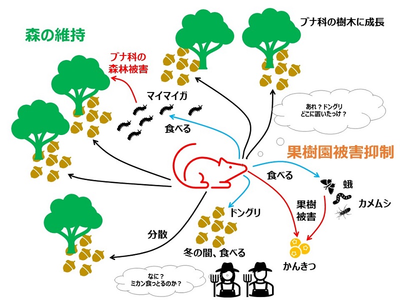 【生物工学科】福山大学ブランドの研究成果:森のネズミの生態的役割の解明