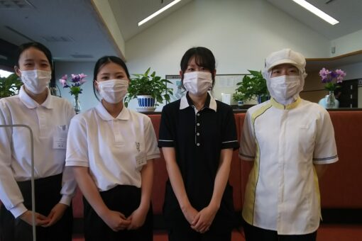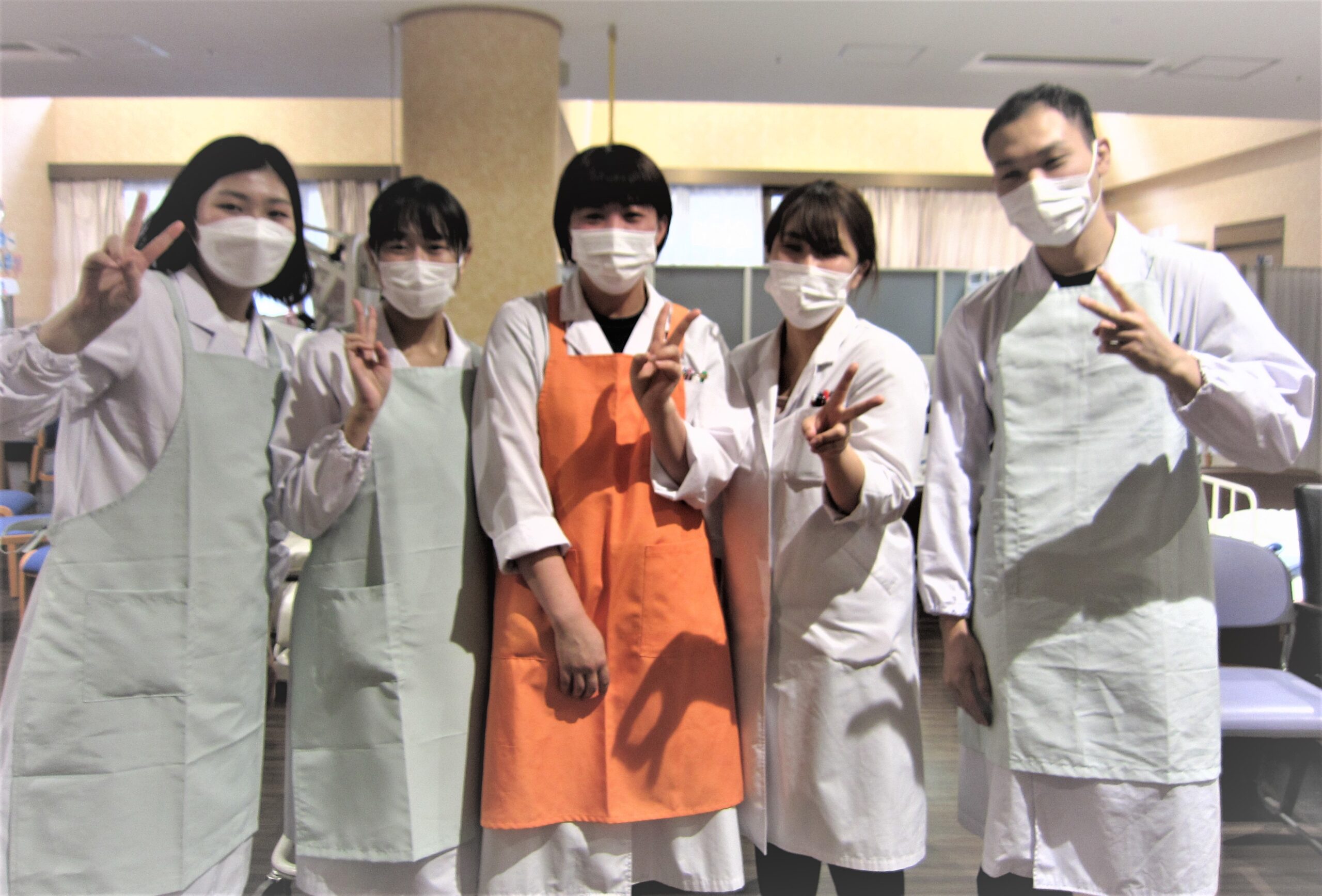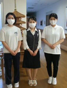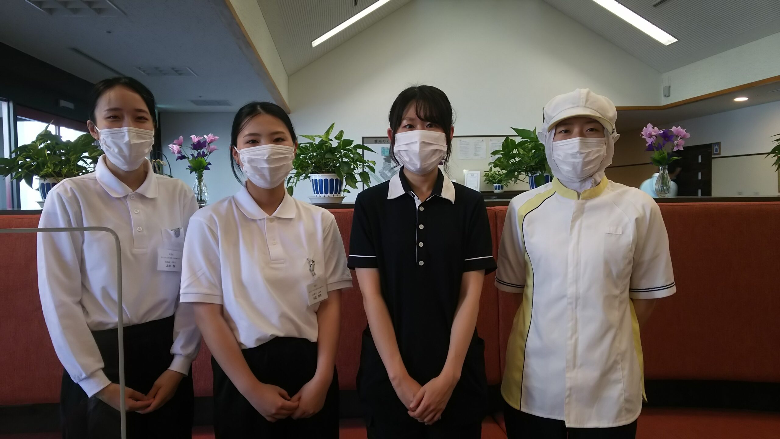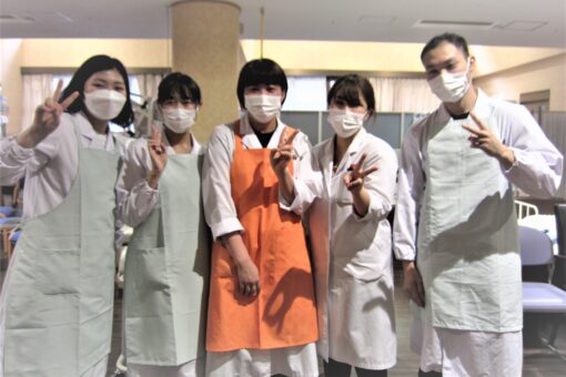 また、給食部門に関しては、本学科の卒業生で委託給食会社の一員として給食業務に従事している方もいます(特別養護老人ホーム星の里)。後輩たちを迎える立場になり、頑張っている姿を見せてくれ、実習学生も教員も少し安心感が増す気持ちになります。業務途中でしたが、一緒に写真に収まってくれました。元気な様子にホッとします。