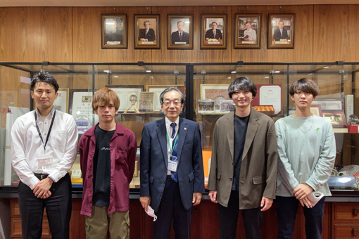 学長室の訪問記念に、大塚学長と一緒に集合写真
