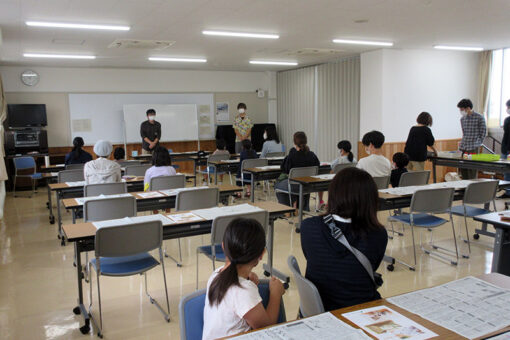 親子11組(子ども13人)の参加を得て、午前10時、まずはMのリーダーS君と東和工業のY部長のオープニング挨拶でスタートです(参加スタッフ:学生6名、東和工業3名、地域の方たち6名)。