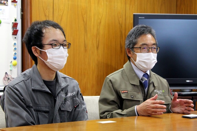 橋本悠汰醸造責任者(左)と宮本幸三常務(右)