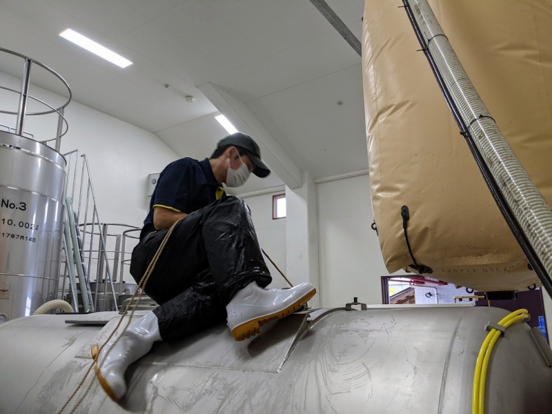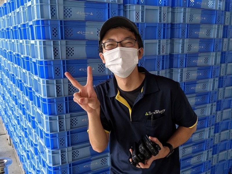 とはいえ、若く経験も少ない身に大きな負担がかかるのは確実で、老婆心ながら様子を尋ねたところ仕込みの人手が圧倒的に足りず、なかなか家にも帰れないとのことでした。そこで、ワインの仕込みを手伝ってくれる人がいないかと学生さんに呼びかけたところ、広島県立世羅高等学校出身の深光純弥くん(生物工学科4年生)が手をあげてくれました。セラアグリパーク様の暖かいご支援のもと、ここから生物工学科の先輩・後輩の二人三脚でのワイン作りが始まりました。ちなみに、深光くんの実家は世羅町で鉄工所を営まれており、せらワイナリーではたくさんの方に声をかけていただいたとのことです。