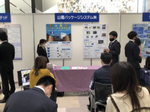 今回、本学は山陽パッケージシステム株式会社、テクノス三原株式会社、株式会社山本屋という備後地域で活躍されている3社を訪問し、実際に商品の製造過程を見学して現場の社員から説明を受けた後、グループでポスターにまとめ、7分という時間制限のなかで発表を行いました。