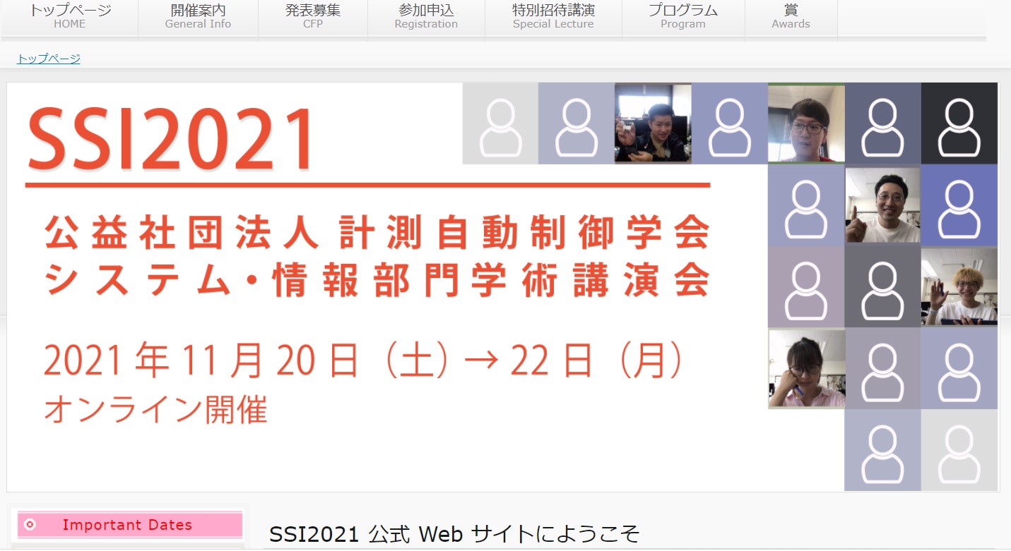11月20日(土)~22日(月)、公益社団法人計測自動制御学会システム・情報部門学術講演会がオンラインにて開催されました。工学部スマートシステム学科では2件の発表を行い、そのうちの1件は卒業研究に取り組んでいる4年生が、研究の取り組みを発表してくれました。学生の発表の様子について、学長室ブログメンバーでスマートシステム学科の伍賀が報告します。
