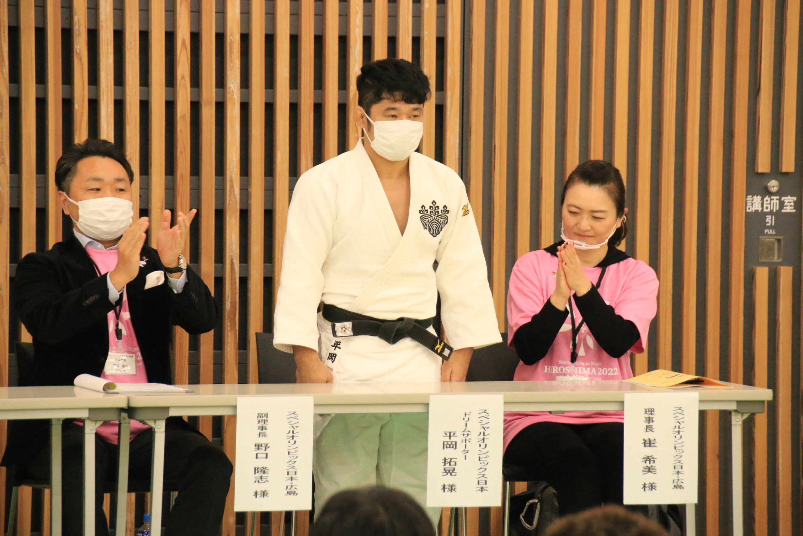 また、この大会には、特別協力者としてスペシャルオリンピックスドリームサポーターである柔道家の平岡拓晃氏が参加してくださいました。平岡氏は広島県出身で、近畿大学附属広島高等学校福山校、筑波大学を卒業後、2008年には北京オリンピックに出場、そして2012年にはロンドンオリンピックで銀メダルを獲得されました。