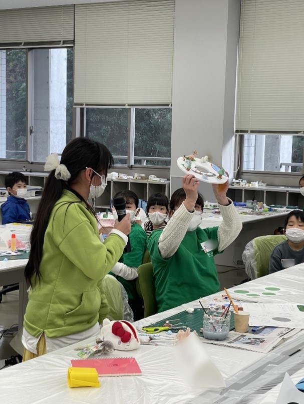 最後には、作品の発表を行いました。短時間でとても素敵な作品がたくさんできました!短い作業時間だったので、まだまだ作りたいという子どもがたくさんいて、用意した模型材料を持って帰ってもらいました。家で作り足した作品も見てみたいなと思っています。