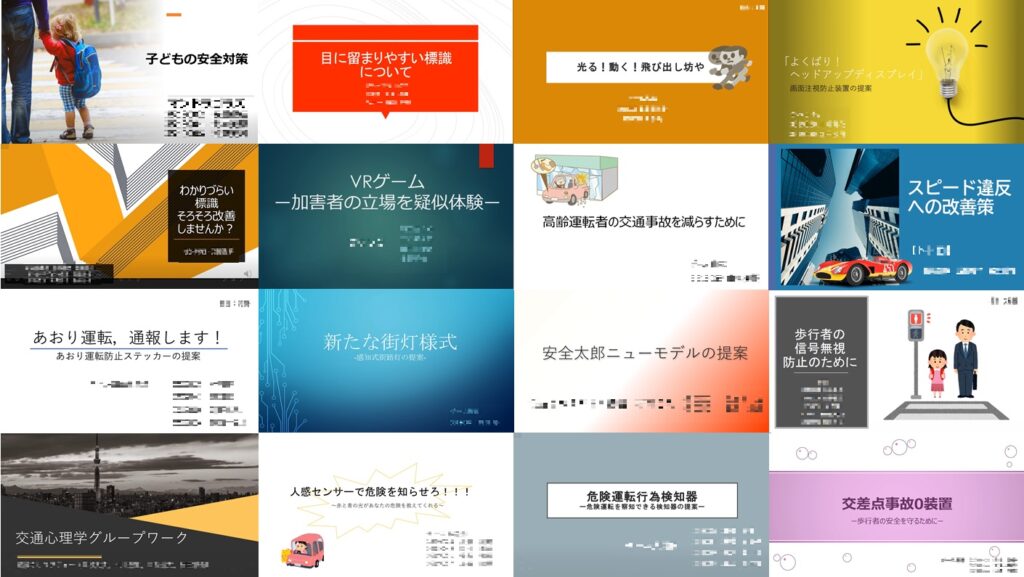 毎年、講義の最後に、福大発・心理学的な交通安全対策・交通事故防止策についてのアイディア発表会を開催しておりますが(一昨年度の様子はこちら)、COVID-19の影響を受けまして、本年度はオンデマンドでの実施となりました。